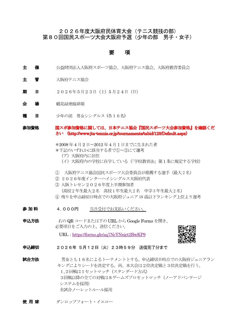 2026年度大阪府民シングルステニス大会