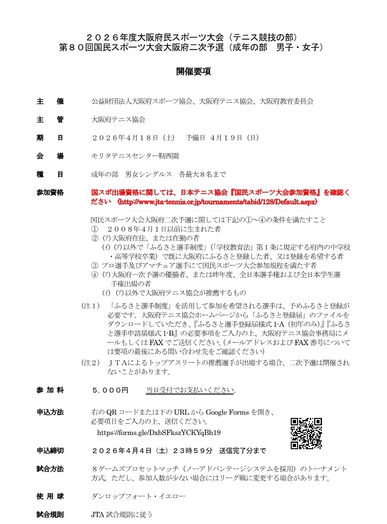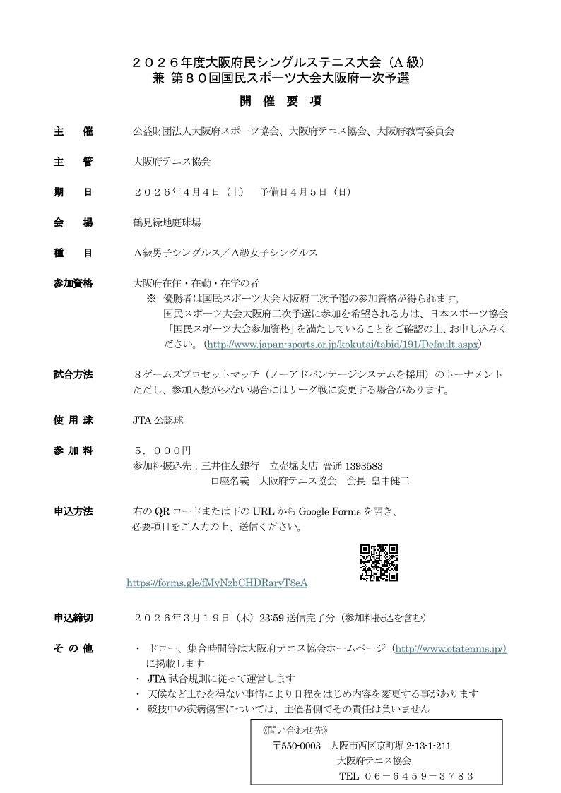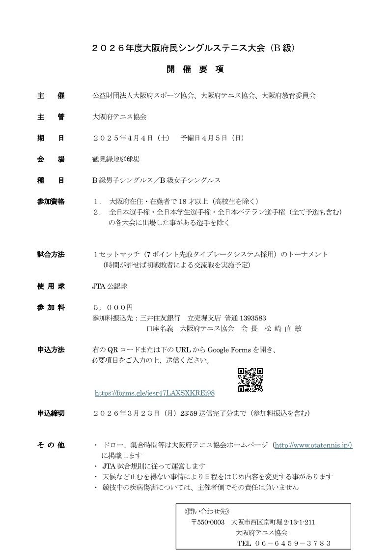 2026年度大阪府民シングルステニス大会