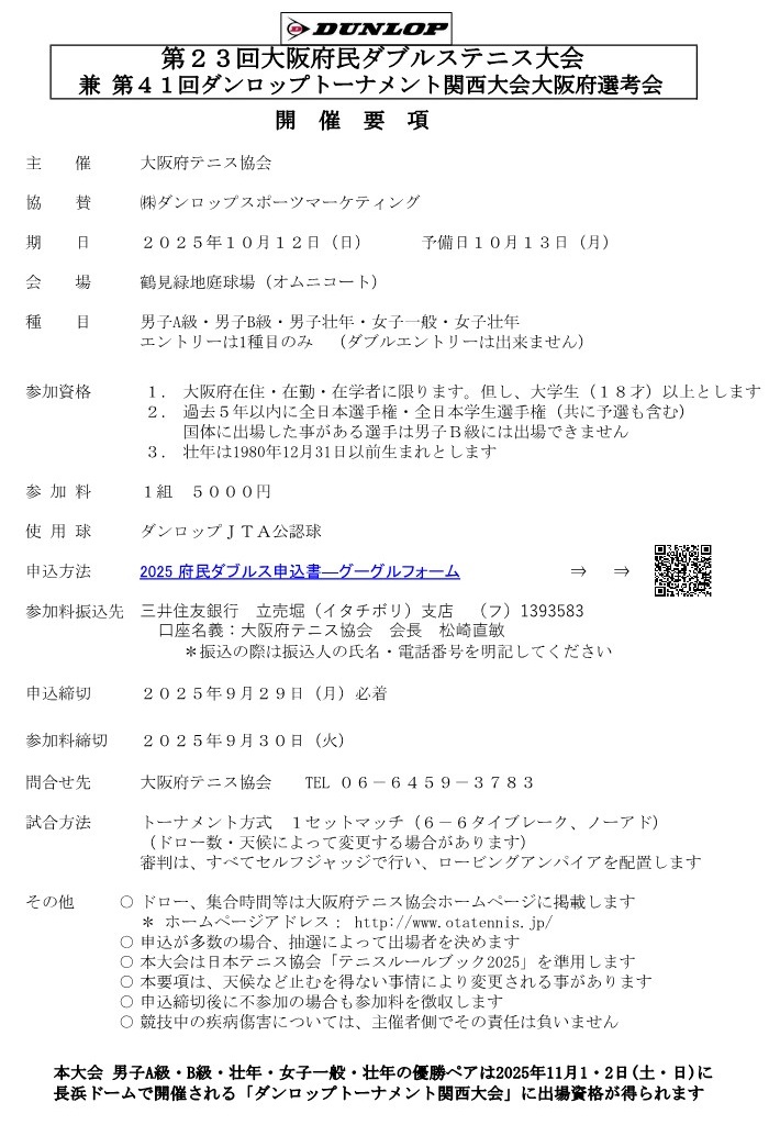 第23回大阪府民ダブルステニス大会兼 第41回ダンロップトーナメント関西大会大阪府選考会