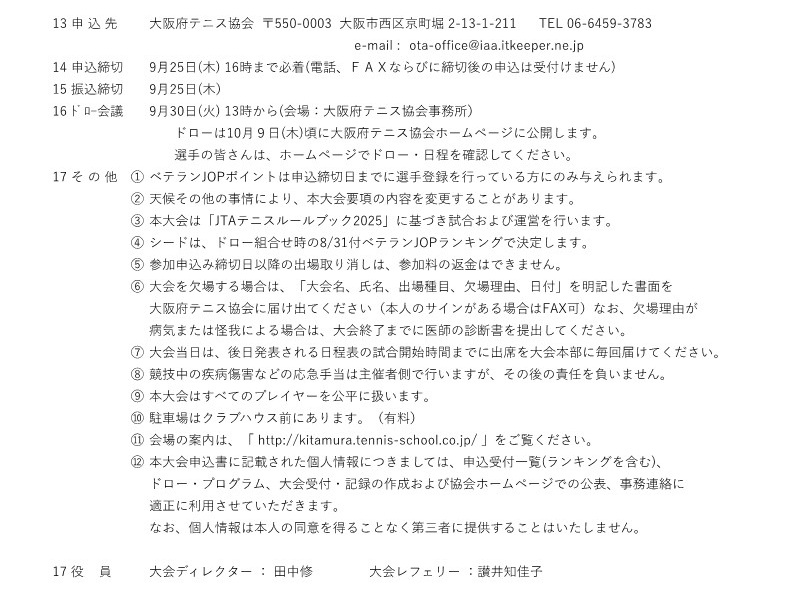2025年度大阪府民スポーツ大会(テニス競技の部)